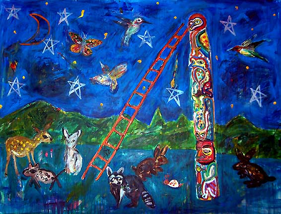 "Perhaps we can build a ladder, and Little Flower can climb down to safety" Suggested Little Deer.