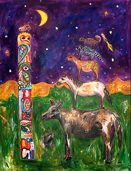totem pole of their own. A relieved Little Flower gleefully climbed down the totem pole her